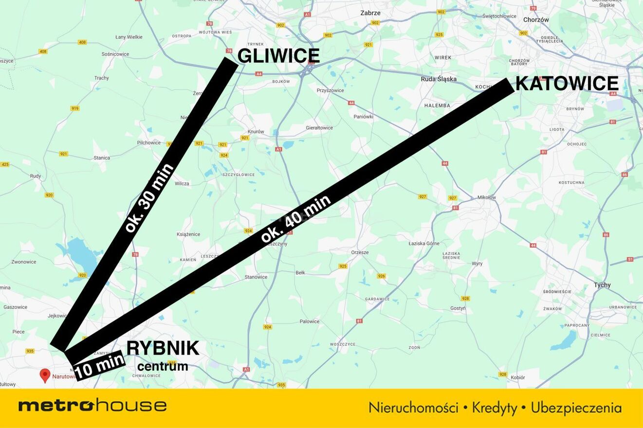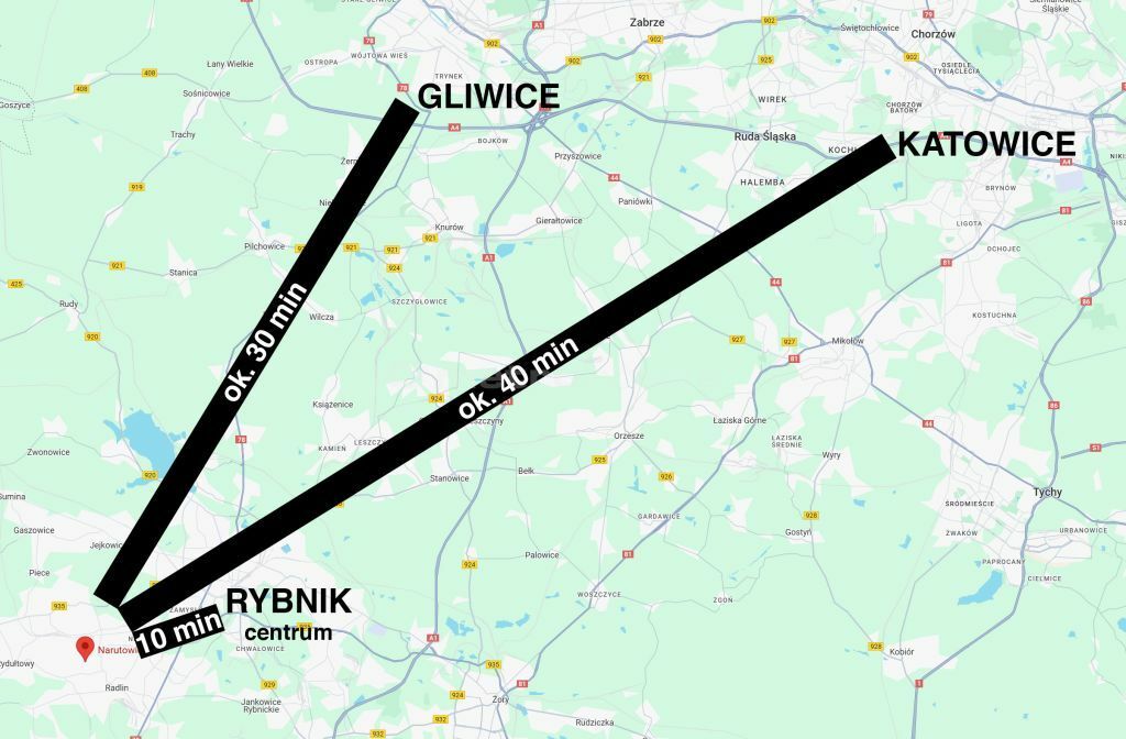 Korzystna lokalizacja oferuje bliskość drogi regionalnej PSZCZYNA-RACIBÓRZ, zabytkowej kopalni Ignacy oraz licznych usług i sklepów.