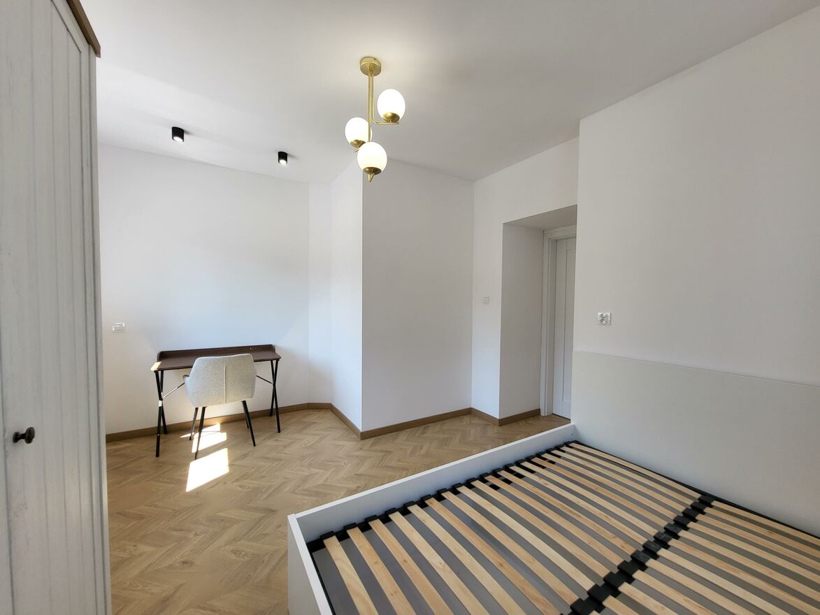 Mieszkanie jak i cała kamienica przeszła generalny remont w 2025 roku - wymieniono wszystkie instalacje, odnowiono ściany i podłogi, zamontowano nowe kuchnie i łazienki. Dzięki temu wnętrze łączy historyczny charakter kamienicy z nowoczesnym komfortem.