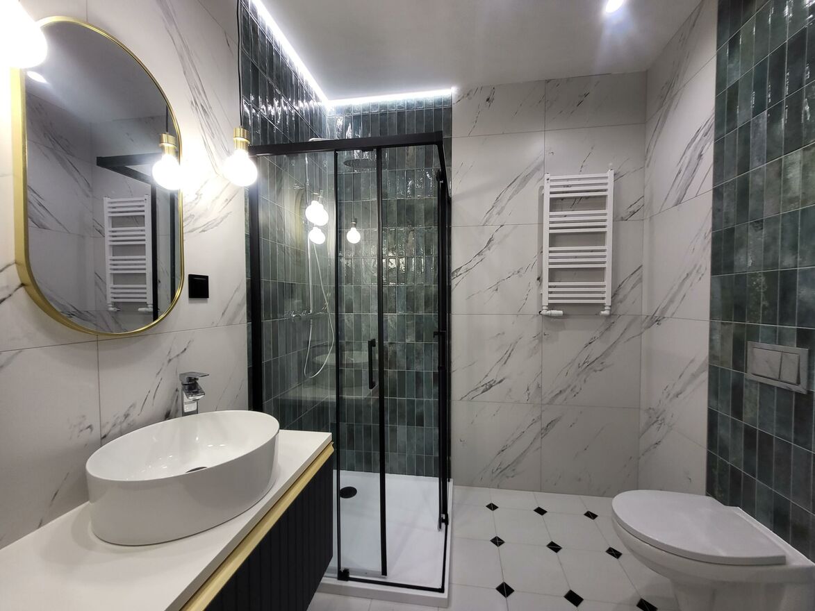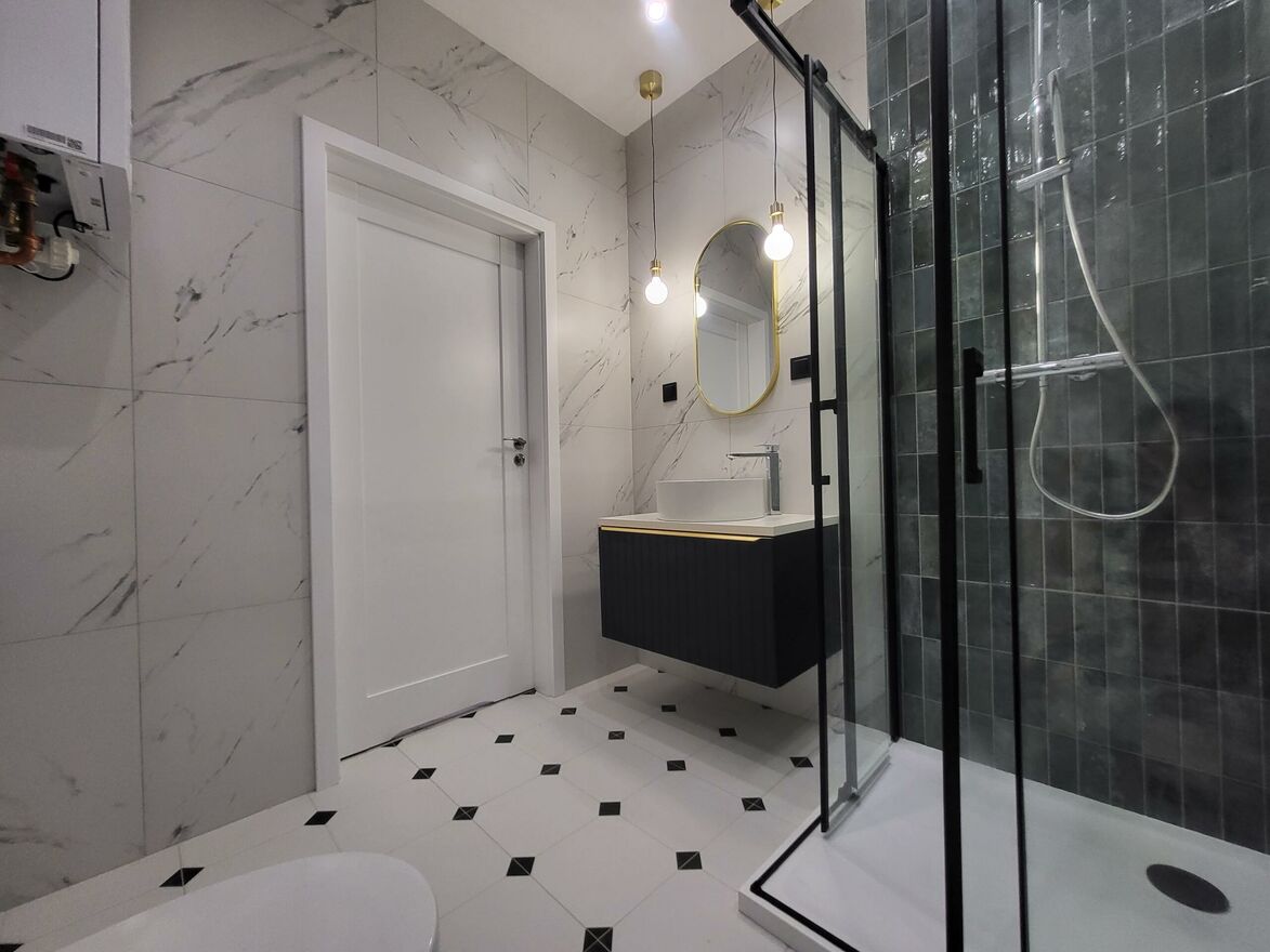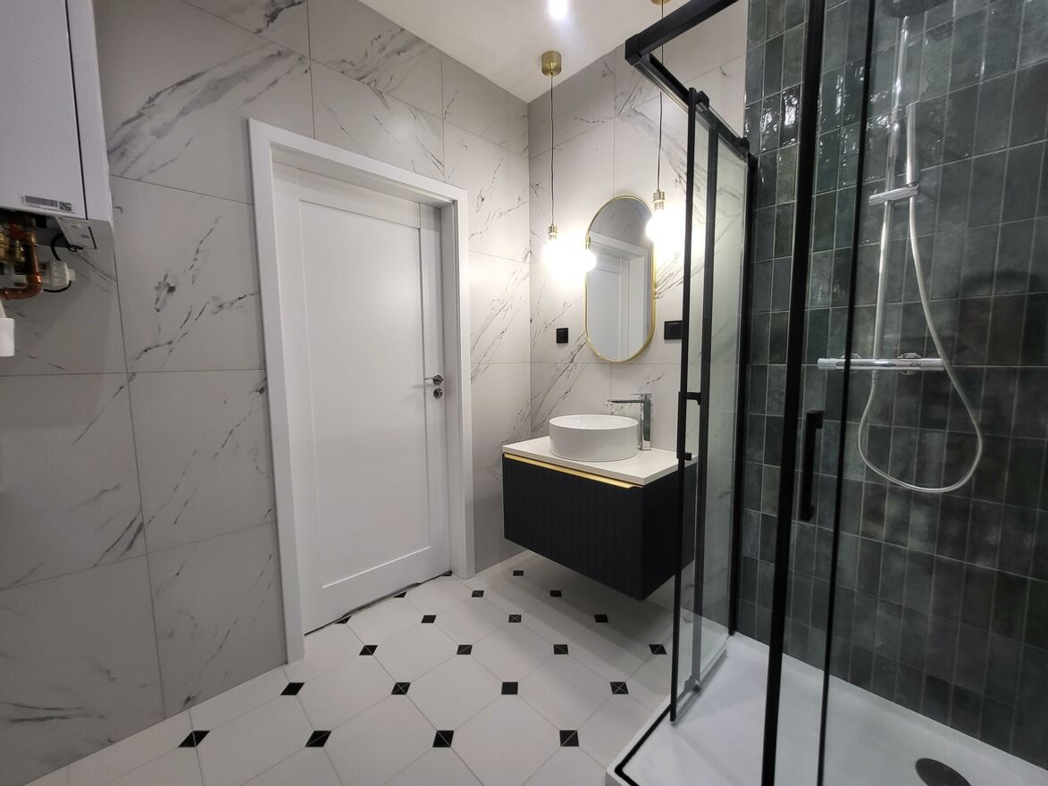 - nowoczesnej łazienki z prysznicem i pralką