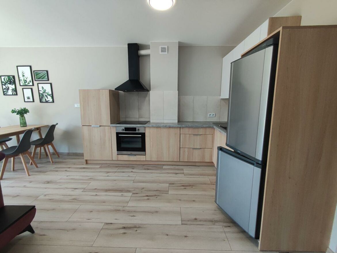 W kuchni znajdują się meble wraz z niezbędnym sprzętem (lodówka, płyta indukcyjna, piekarnik, zmywarka), duże szafayw zabudowie w jednym z pokoi oraz w sypialni.