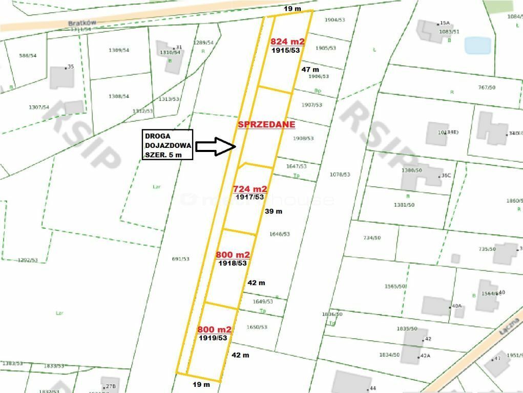 - wygodny dostęp udział w drodze dojazdowej (5 m szer.) z włączeniem w ul. Bratków