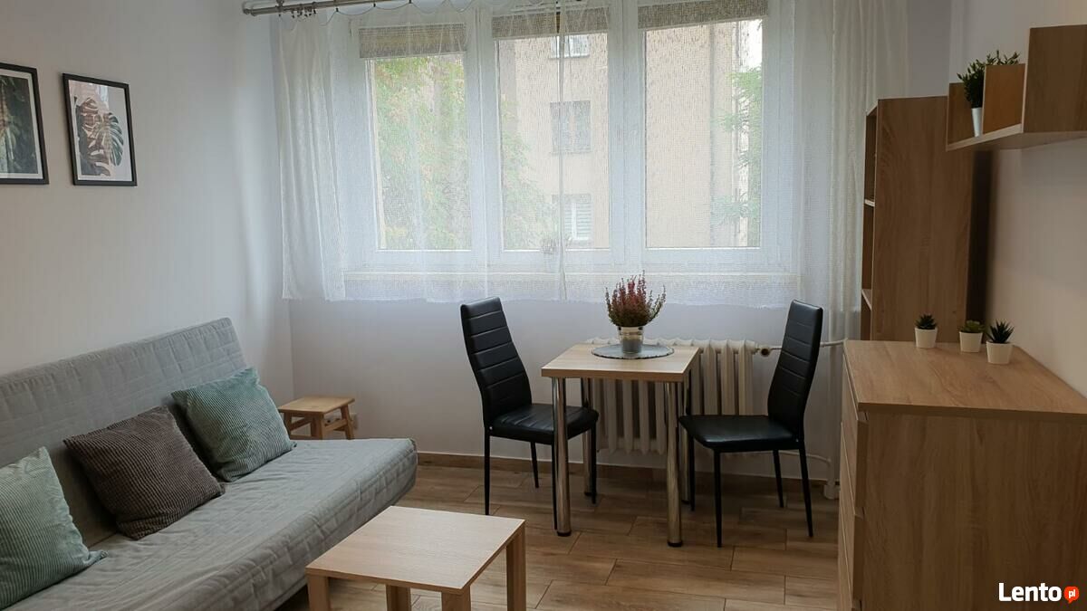 Mieszkanie w centrum Rybnika niedaleko teatru przy ul Chalotta. Bardzo dobra lokalizacja, wszędzie blisko, dworzec PKP, przystanki autobusowe, galera handlowa Focus, rynek, sklepy, apteki, restauracje, piekarnia.Mieszkanie składa się a 1 pokoju, łazienki i aneksu kuchennego. W pokoju duża pakowna szafa, wygodna sofa rozkładana, komoda, regał, stół, 2 krzesła. W łazience junkers, kabina prysznicowa, pralka, kompakt WC, umywalka z szafką. Kuchnia - meble, dwupalnikowa płyta gazowa, lodówka. W bloku znajduje się winda. Mieszkanie ciepłe, ciche.